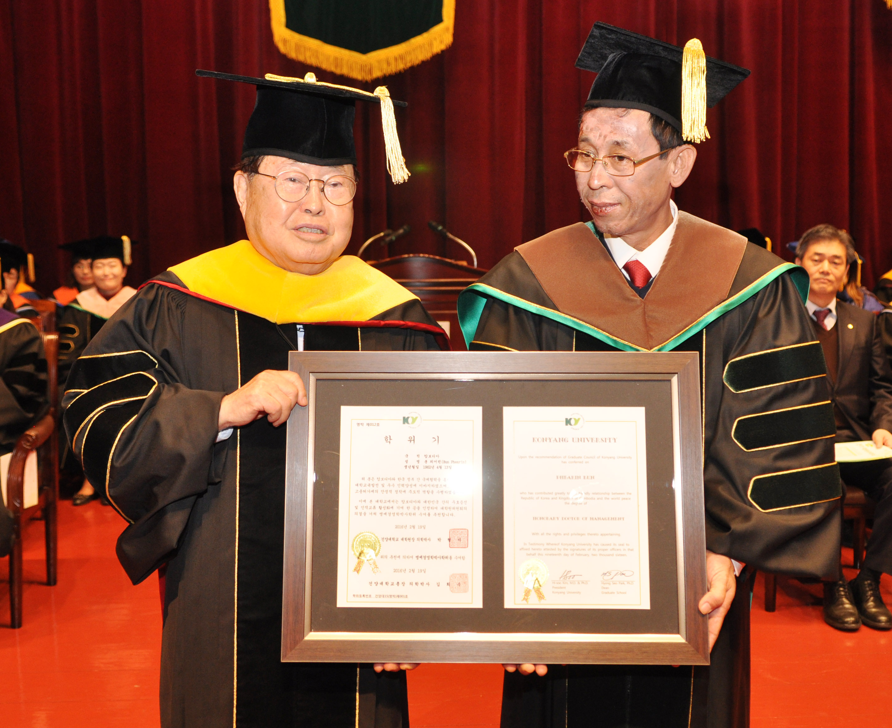 김희수 총장과 분 피어린 총장이 명예박사학위증을 들고 있는 모습.jpg