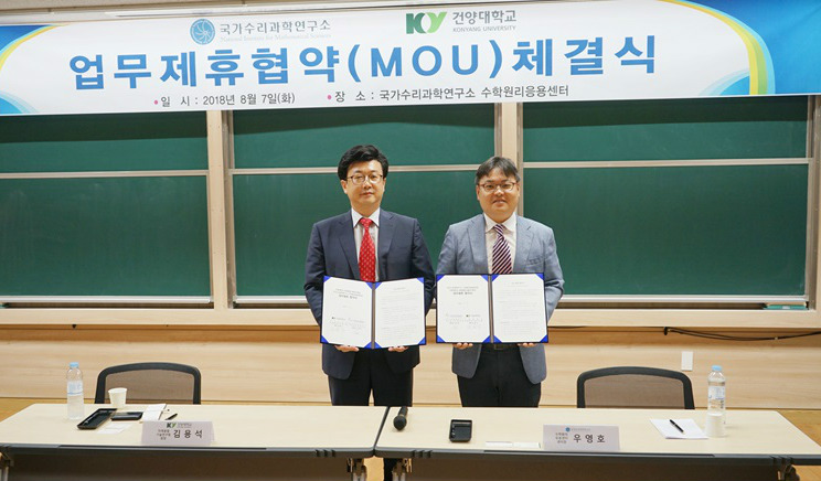 [사진설명] 왼쪽부터 건양대 김용석 미래융합기술연구원장, 국가수리과학연구소 우영호 수학원리응용센터장