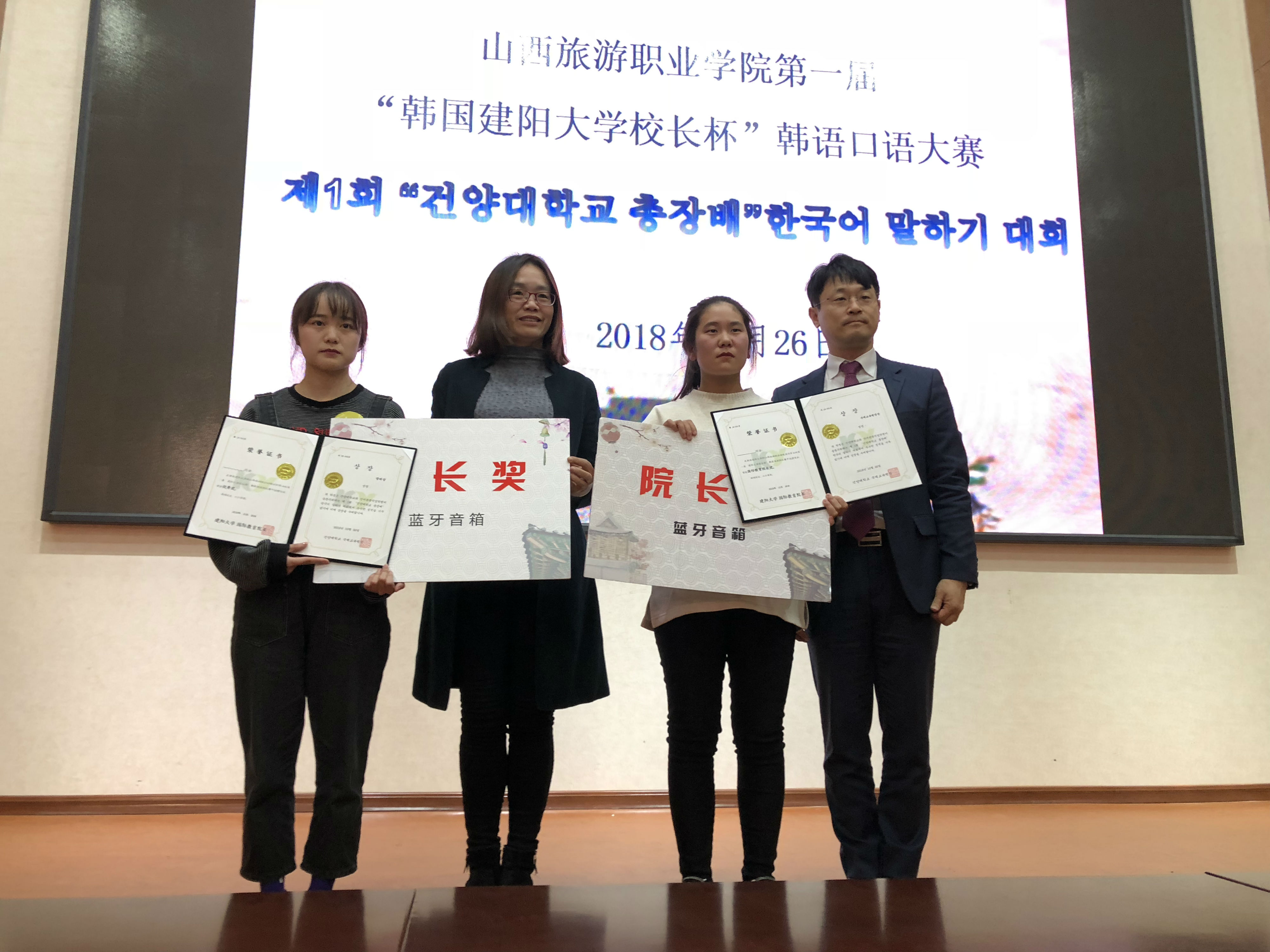 이날 총장상에는 응용한국어학과 2학년 왕초가, 부총장상에는 응용한국어학과 3학년 단문연이, 그 외 국제교육원장상과 장려상 등은 응용한국어학과 가생평, 등위, 왕문혜, 양운하, 왕채채, 왕은란, 조비걸, 이나가 수상했다.