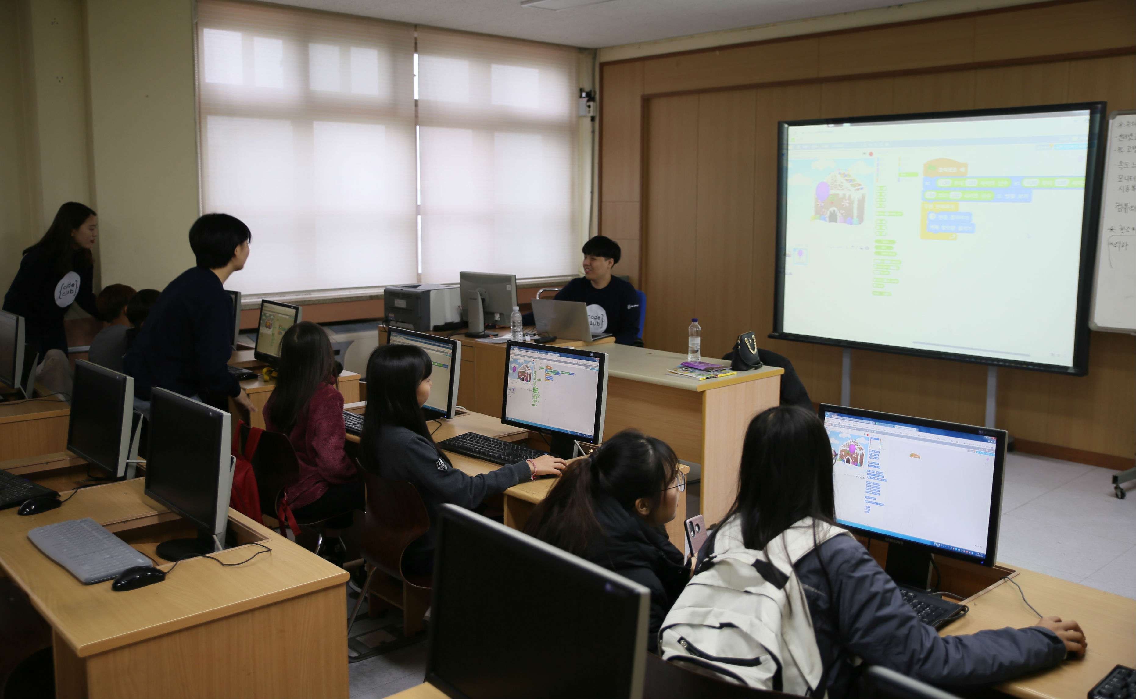 1학년에서부터 3학년까지 다양하게 구성된 동아리원은 총 8명이며 현재는 논산 동성초등학교에서 매주 수요일 오후 2시부터 4시까지 학생들이 직접 학교를 방문해 초등학생들에게 스크래치를 활용한 코딩 교육을 진행하고 있다.