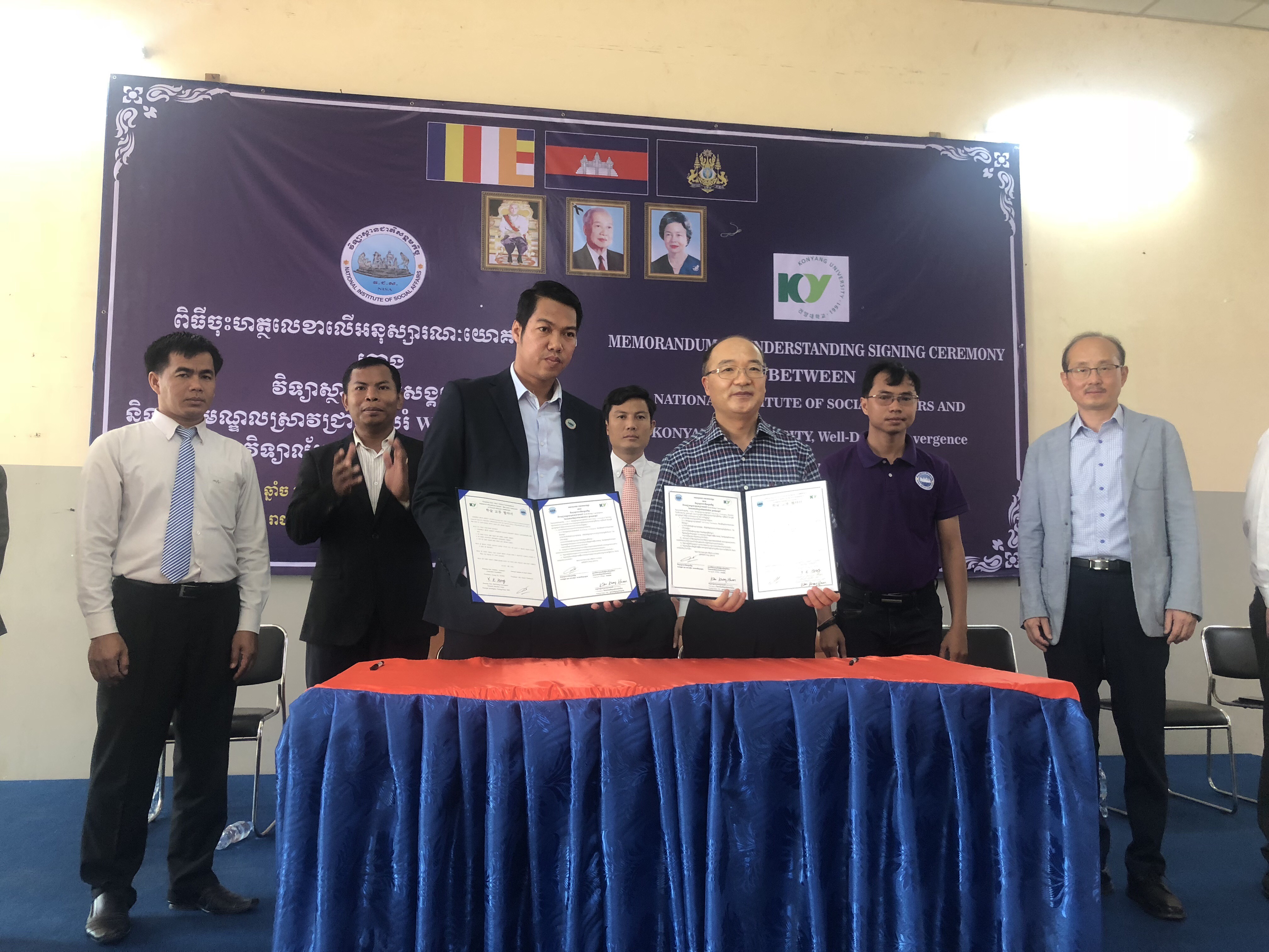 [논산]건양대학교(총장 이원묵) 웰다잉 융합연구 교육센터(연구책임자 김광환 교수)는 지난 20일 캄보디아에서 캄보디아 국립사회부 대학교(NISA)와 업무협약(MOU)을 체결했다.