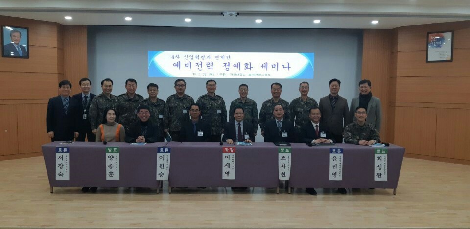 건양대(총장 이원묵) 군사경찰대학(학장 이세영)은 지난달 28일 동원전력사령부에서 4차 산업혁명시대에 부응한 예비전력 발전 방안에 대하여 세미나를 개최했다. 이날 세미나는 건양대 산학협력단(LINC+)의 지원을 통해 산·학·연·군 협력차원에서 마련됐으며 대학 및 동원전력사령부 관계관 등 150여 명이 참석해 열띤 열린 토론을 펼쳤다. 4차 산업분야 전문가 6명이 발표와 토론자로 나선 이날 세미나에서는 AI, 빅데이터, 드론, 로봇, 사물인터넷, 블록체인 등 첨단기술을 예비전력분야 활용 및 대학에서 전문가 양성을 위한 다양한 방안들이 제시됐다. 건양대와 동원전력사령부는 올해 8월 중에 추가적으로 전국의 주요 예비군지휘관을 대상으로 첨단기술의 예비전력분야 활용에 대한 주제로 하여 다시 세미나를 개최할 예정이다.