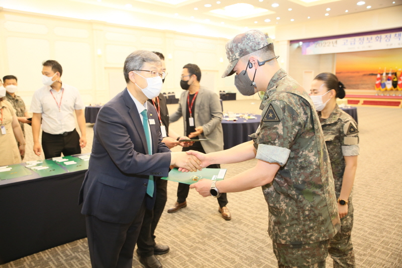 건양대학교(총장 이철성) 평생교육원(원장 이시우)이 21일 오후 계룡대 육군본부에서 2022 고급정보화 정책과정 수료식을 진행했다. ”더강한 육군 아미타이거”라는 주제로 영관급 장교 및 사무관급 이상 군무원 77명을 대상으로 5월 9일부터 6월 13일까지 10차례에 걸쳐 원격으로 진행된 이번 과정은 메타버스, 블록체인, 양자컴퓨터 등 첨단정보 부문을 다루며 각 분야의 우수한 전문가를 초빙해 강사진으로 구성했다. 이날 수료식에 참석한 이철성 건양대 총장은 “고급정보화 정책과정은 군의 첨단 역량을 키우고 미래전장을 주도하는 핵심인재를 키우는 중요한 프로그램으로 건양대는 앞으로도 우리 군의 발전을 이루는데 최선을 다해서 협력할 것”이라고 밝혔다. |