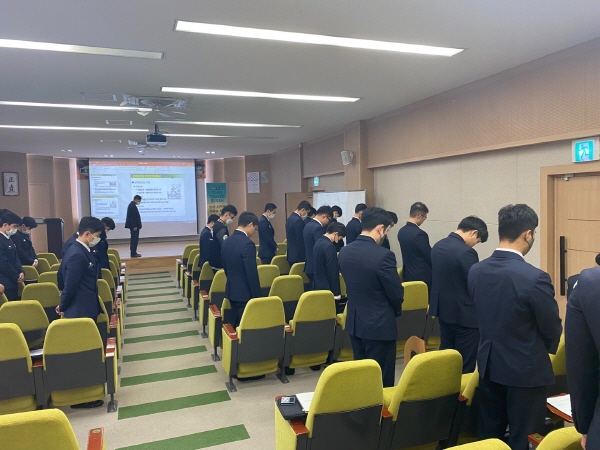턴투워드부산 행사에 동참해 묵념하는 건양대 군사학과 학생들.jpg