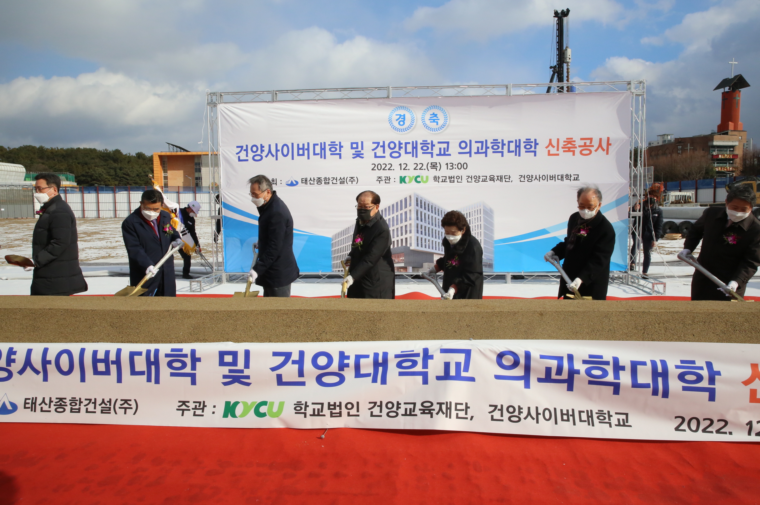 이날 착공식에는 김희수 건양대학교 설립자 겸 명예총장과 서창적 건양교육재단 이사장, 김용하 건양대 총장, 이동진 건양사이버대 총장, 안병익 건양교육재단 건설본부장을 포함해 건양대⸱건양사이버대 주요 보직자들과 시공사 대표 및 관계자 등 100여명이 참석했다.