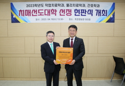 양 기관은 이날 치매극복을 위한 정보 공유 및 협력체계 구축을 위한 논의와 함께 향후 상호업무협조를 결의했으며 치매극복선도대학 지정에 따른 현판 전달식을 함께 가졌다.