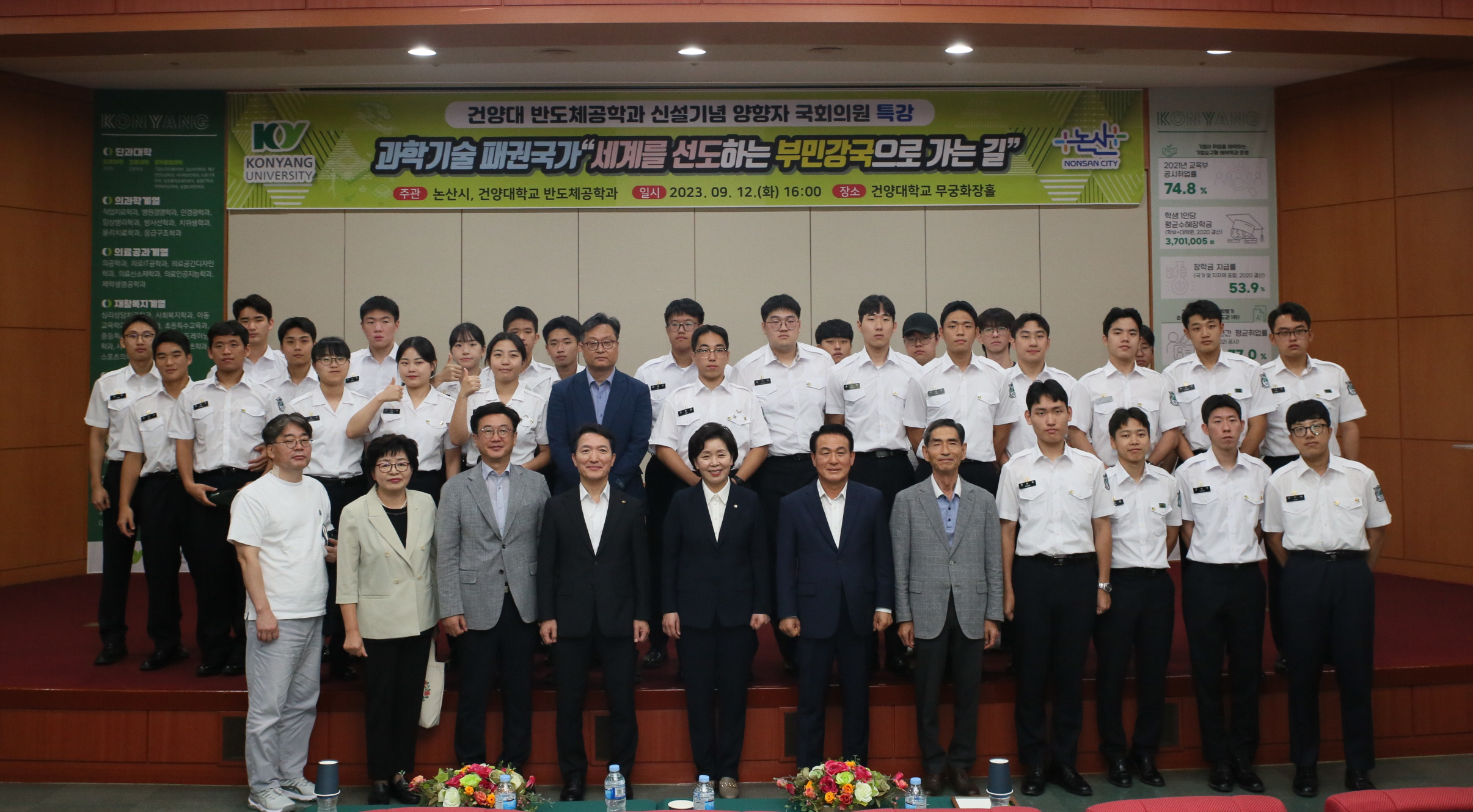 12일 건양대 창의융합캠퍼스를 방문한 반도체 전문가 출신 양향자 국회의원이 반도체 특강을 진행한 뒤 기념사진을 찍는 모습.jpg