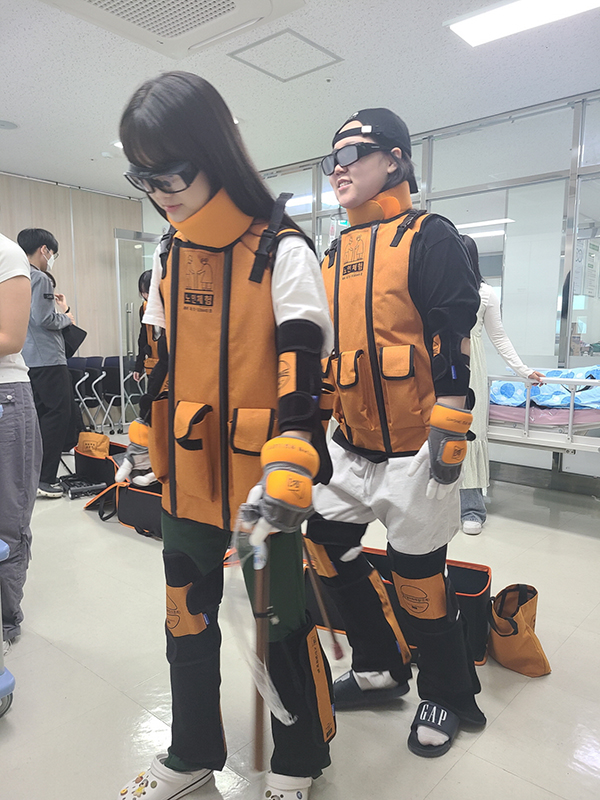 요양원 봉사 전에 노인체험교육을 하는 건양대 간호학과 학생들.jpg