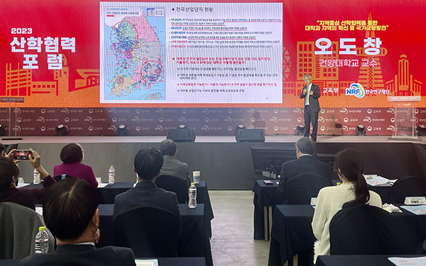 '지역과 함께하는 산학협력, 담대한 혁신의 시작'이라는 주제로 열린 이번 2023 산학협력 EXPO에서 건양대 의공학과 오도창 교수(LINC3.0사업단장)는 ‘지역중심 산학협력을 통한 대학과 지역의 혁신 및 국가균형발전’이라는 주제로 통해 지역의 주력산업과 연계한 지방 대학의 교육 강화 방안에 대해 발표했다.