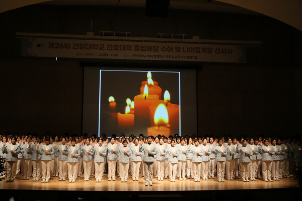 나이팅게일 선서식은 내년 2월 졸업을 앞둔 학생들이 졸업메달을 수여받는 동시에 스승으로부터 촛불을 이어받으며 나이팅게일의 진정한 희생과 봉사정신을 되새기고 헌신하는 간호사가 될 것을 다짐하는 건양대 간호대학의 전통행사다.
