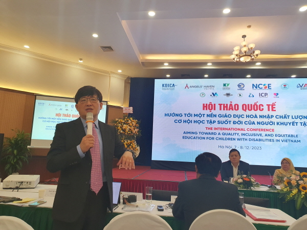 7일 열린 베트남 교육과학원과 국립특수교육원 주최 국제 학술대회에서 발표하는 건양대 초등특수교육과 이필상 교수.jpeg