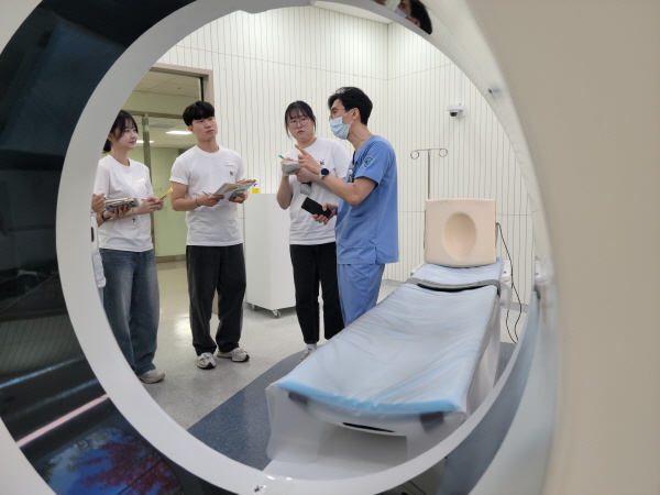 건양대가 23일부터 28일까지 진행한 보건·의료분야 다직종연계교육프로그램인 ‘제3회 KY리더스캠프에서 학생들이 건양대병원에서 실습하는 모습 1.jpg
