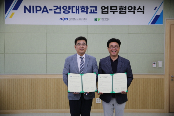 건양대-정보통신산업진흥원, 공개 SW 활용 및 인재양성 위한 협약 체결 건양대학교(총장 김용하) SW중심대학사업단(단장 김용석)과 정보통신산업진흥원(NIPA, 원장 허성욱)이 13일 건양대 대전 메디컬캠퍼스에서 공개 SW 활용 및 저변확대와 SW인재양성을 위한 상호 협력 업무 협약을 체결했다. 이날 협약식에는 SW중심대학사업단 김용석 단장(AI·SW융합대학 학장), 백종섭 SW융합교육원장, 유성하 성과확산실장, 김준화 SW교육센터장과 정보통신산업진흥원 이경록 SW미래본부장, 김정아 수석 등이 참석했다. 양 기관은 이번 협약을 통해 상호 협력 기반을 구축하고 미래 핵심 기술인 공개 SW 활용 및 교육을 활성화함으로써 각 기관의 발전 및 우수한 공개 SW 인재 양성 및 활성화에 기여한다는 계획이다. 이를 위해 양 기관은 공개 SW 관련 전문 교육 협력, 정보기술 협력 및 세미나, 컨퍼런스 개최 등을 진행하기로 했다. 김용석 SW중심대학사업단장은 “이번 협약을 통해 오픈소스 소프트웨어 통합지원센터(Open Up)와 연계하여 다양한 전문적인 교육을 통해 우수한 SW융합 인재를 양성하는 환경을 제공하도록 노력하겠다“고 밝혔다. |