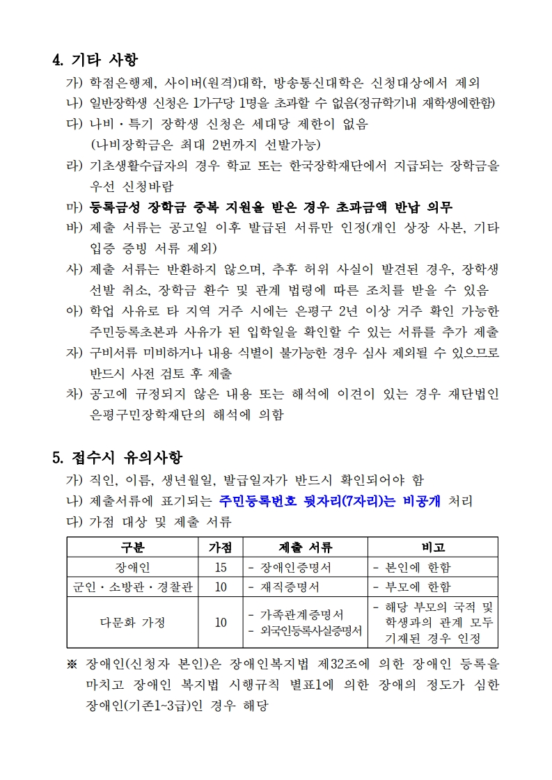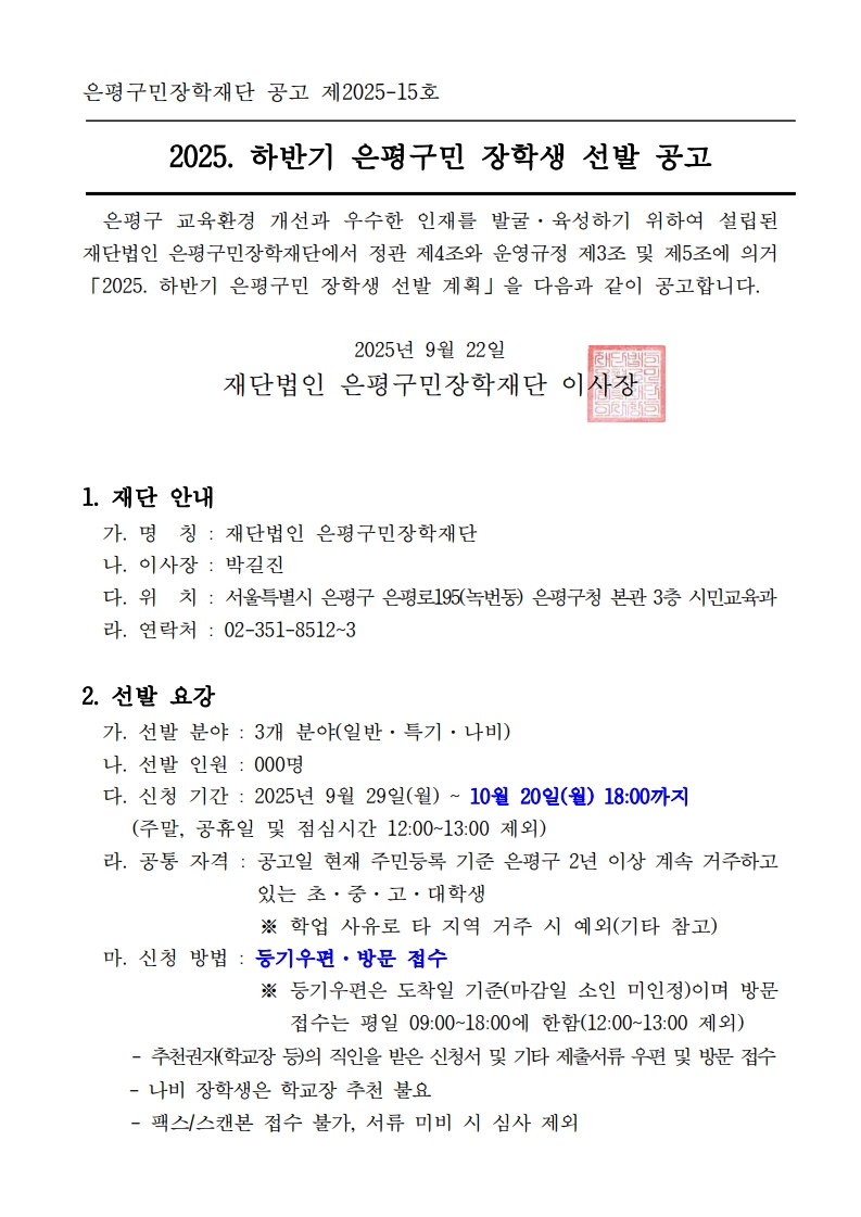 제목 | 2025 하반기 은평구민 장학생 선발 안내 | ||||