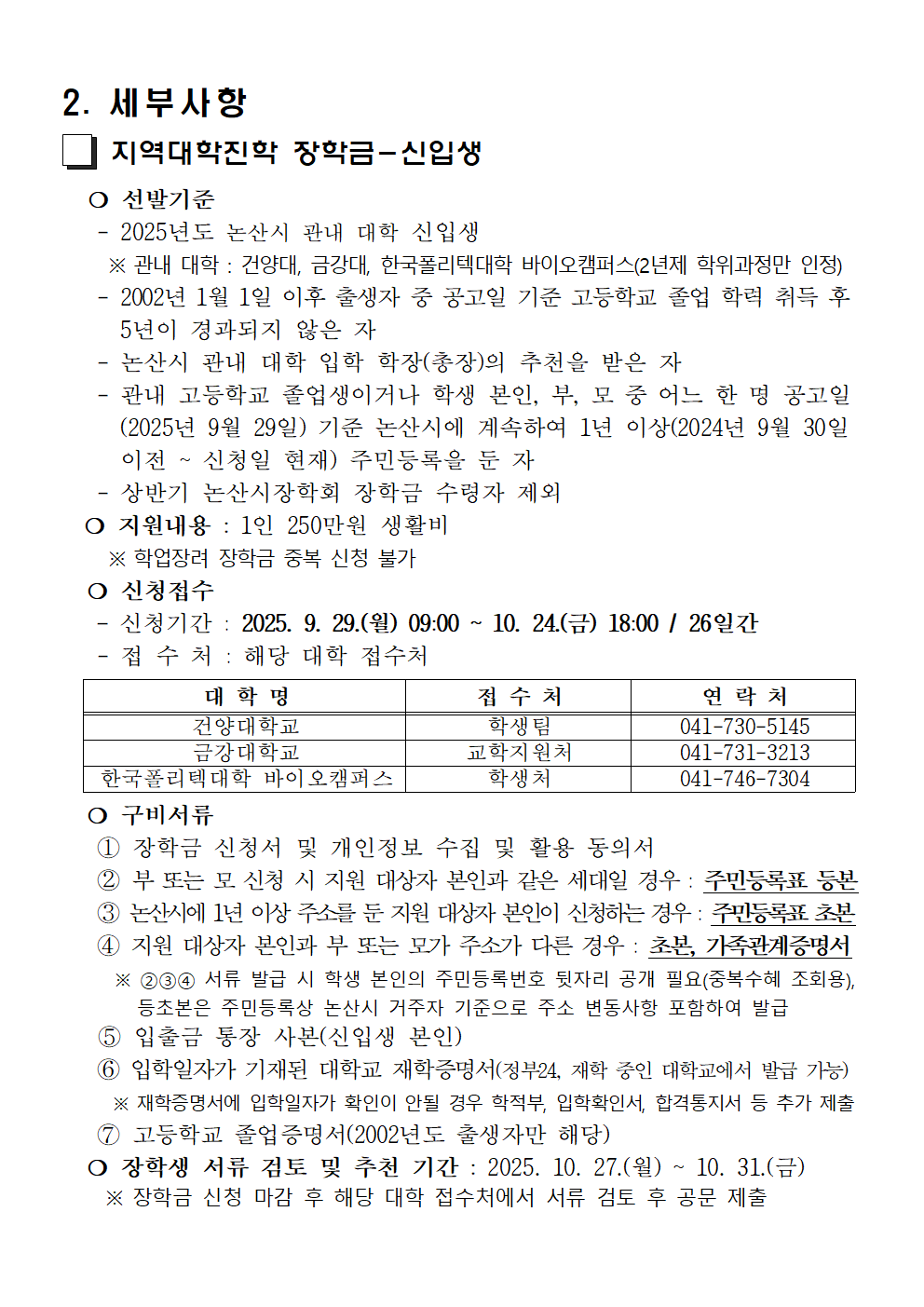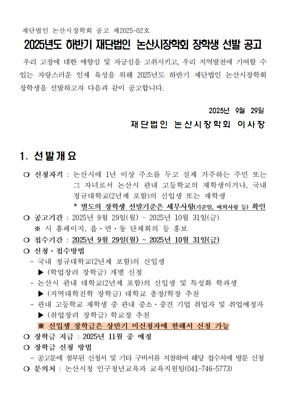 제목 | 2025년 하반기 재단법인 논산시장학회 장학생 선발 안내 | ||||