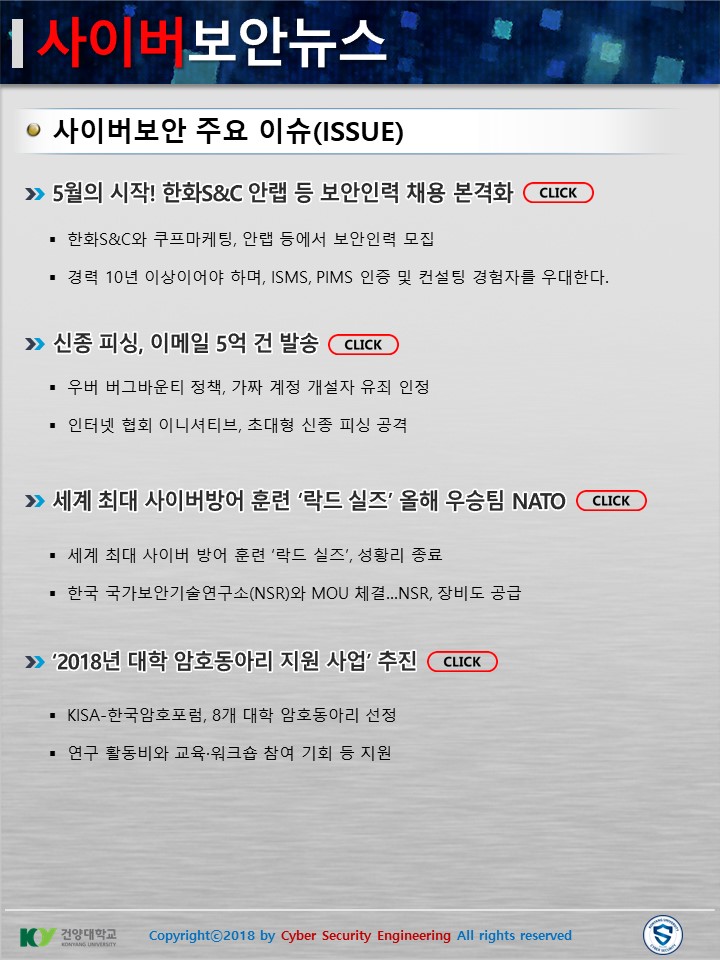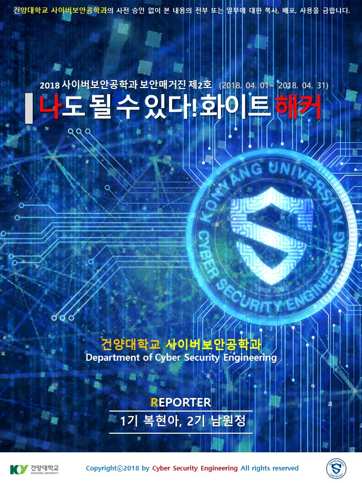 『 사이버보안공학과 보안매거진 2018-2호 』글의 상세내용을 확인하는 표로 제목, 부서명, 등록일, 조회, 첨부, 내용으로 나뉘어 설명합니다.